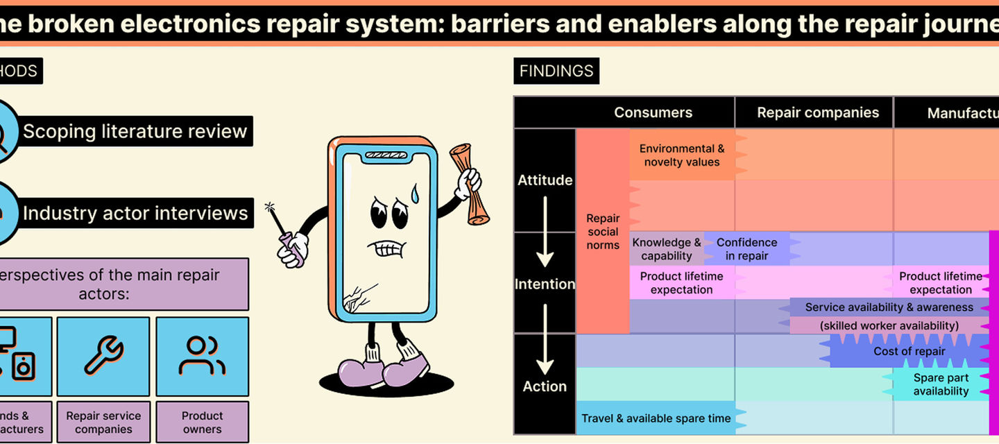 Product lifetimes for repair are declining and the industry as well as consumers are generally suffering from 'Fixophobia' - the inability and fear of repairing products like electronics. A new journal article led by Chris Stretton, together with Laura Niessen, Joana Wensing, and Nancy Bocken starts to find answers to fix the broken repair system. The study's scoping review identifies barriers and opportunities for repairing electronics related to attitudes, intentions, and actions for different stakeholders. You can read the open access article here.